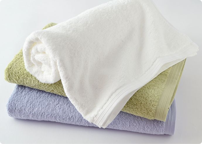 大きく包み込むような大きさは、身体を拭くだけでなく、敷いたり・掛けたりと多目的に使えます。