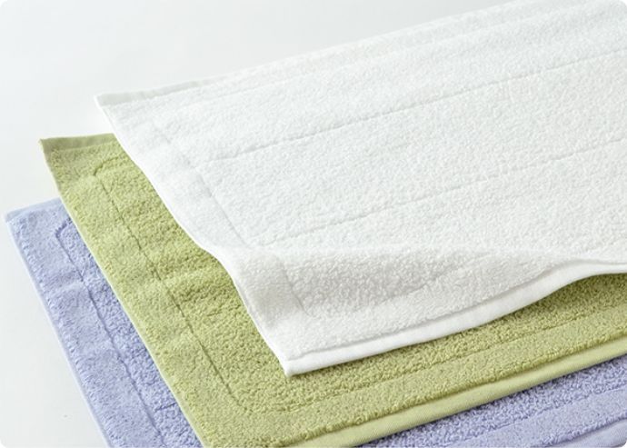 ご家庭では、洗面所に複数枚用意して、使うたびに取り換えることで、いつでも清潔にお使いいただけます。