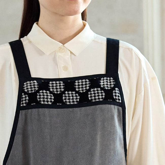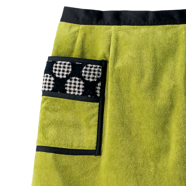 北欧調のシェニール柄をポケットに配置した、ナチュラルなエプロン。