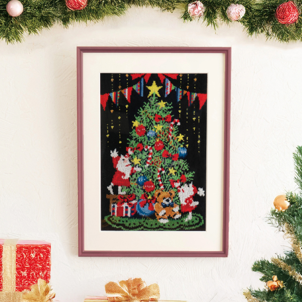 クリスマスムードを楽しめる、壁掛けシェニールが登場です。別売りの額に入れれば、雰囲気もグッと高まります。