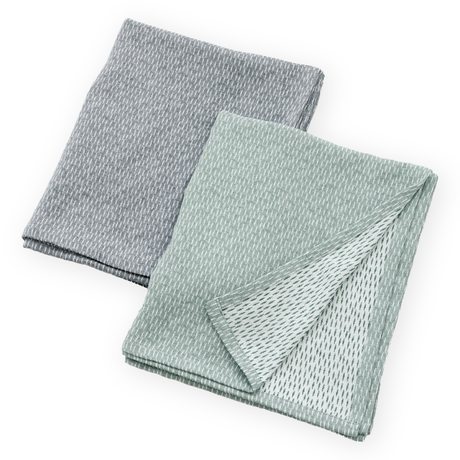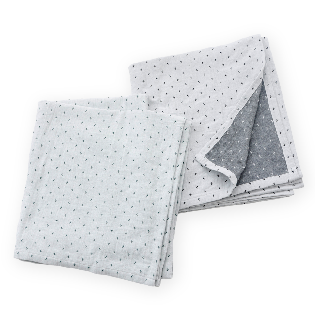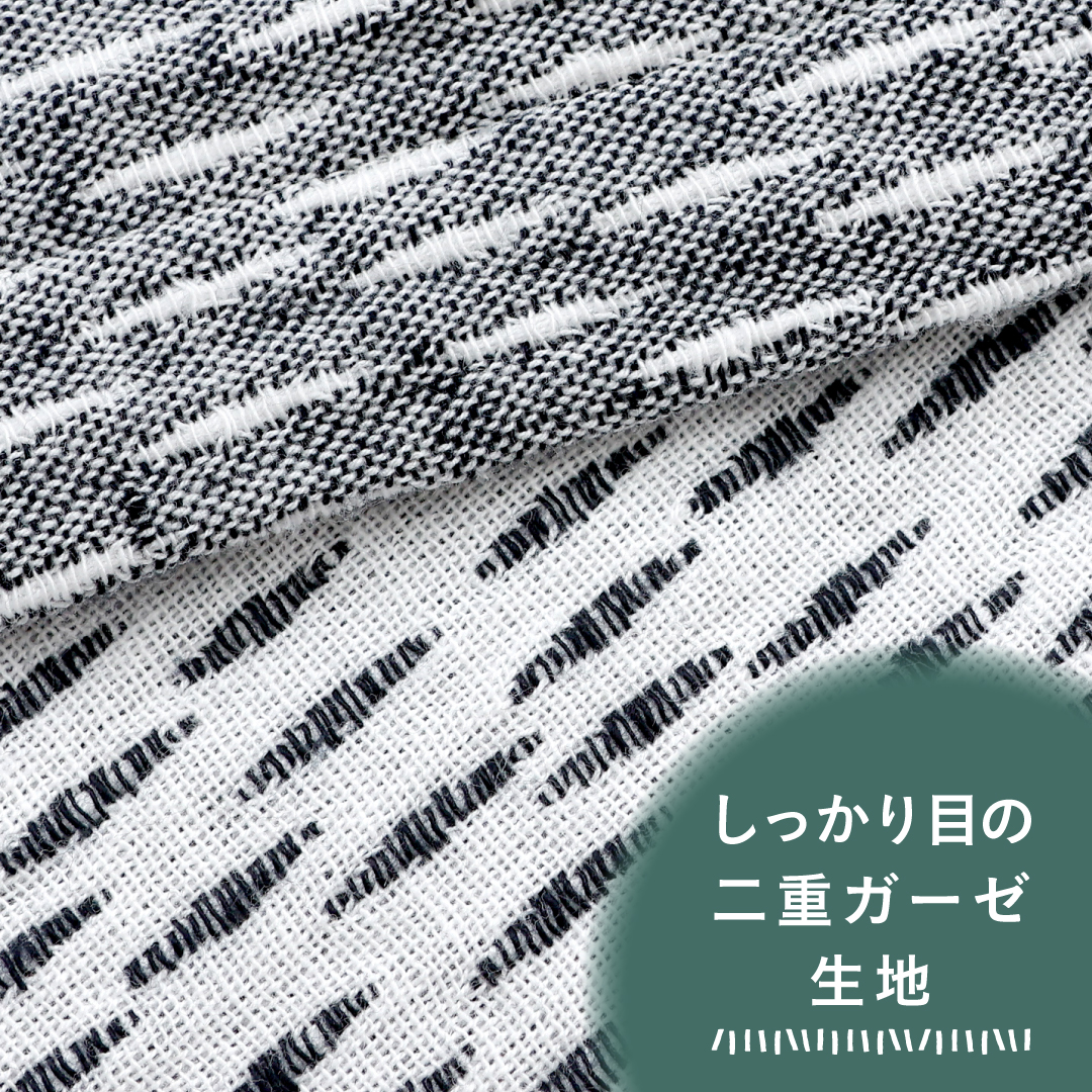生地は触れるたびに心地よさを感じるしっかり目の二重ガーゼ地で、表と裏で色違いに織り上げました。