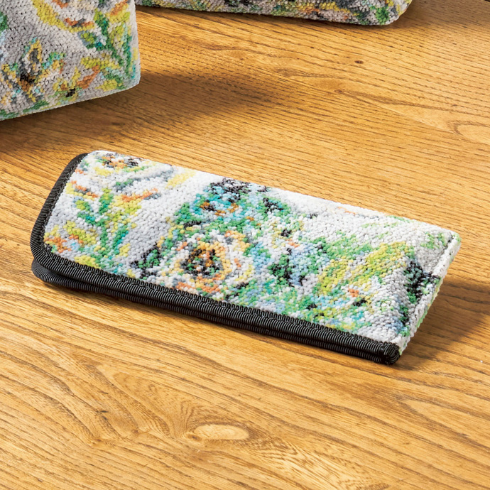 出し入れ簡単なメガネケースがリニューアル。開口部をやや狭くし、移動中の不意な飛び出しを抑える工夫を施しました。
