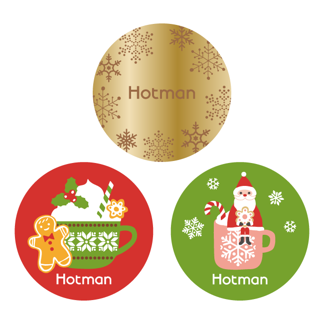 冬のきらめきを感じるゴールドや、「ハッピークリスマス」の刺繍デザインにもなっているかわいらしいサンタさんのイラストのラッピングシールにクリスマスムードが高まります♪