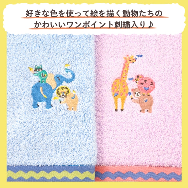 「さーて次はなにを塗ろう!」さまざまな動物たちがカラフルな絵の具で絵を描く様子をモチーフにしたにぎやかで楽しい雰囲気の入園・通園シリーズです。