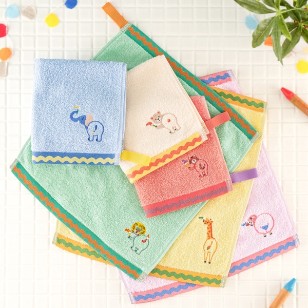 保育園や幼稚園へ月・火・水・木・金・土と、色違いで毎日持っていけるように6色用意いたしました。引っかけるのに便利なループ付きです。