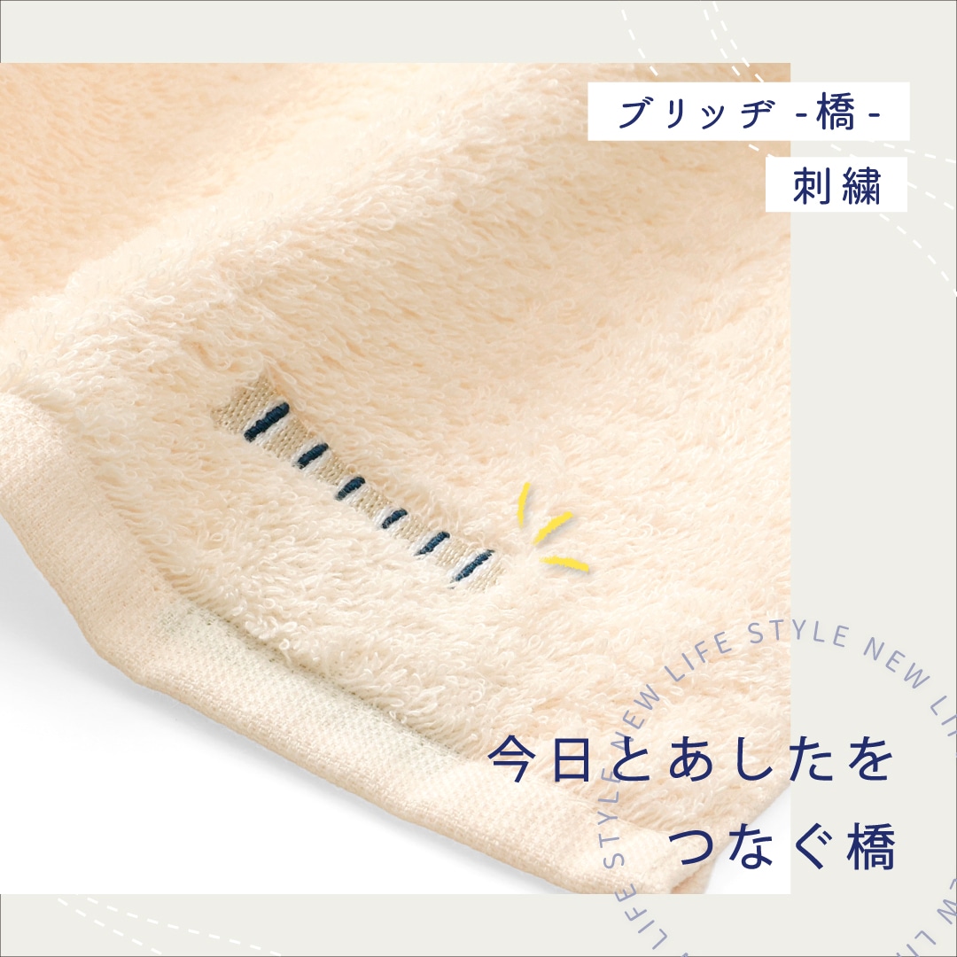 今日が明日へとつながるように、これから続く明るい未来への想いを込めて「ブリッヂ -橋-」刺繍を入れました。