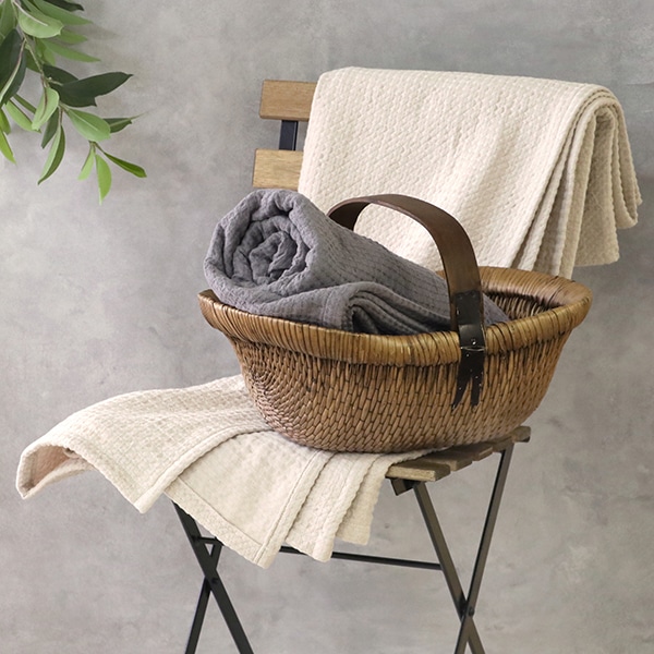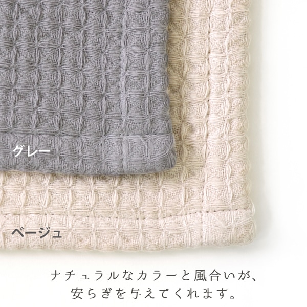 表は軽さが魅力のワッフル生地、裏は吸湿性と通気性に優れたガーゼ生地。二つの異なる生地が、さらりとした心地よい肌触りで、夏の不快感を軽減してくれます。