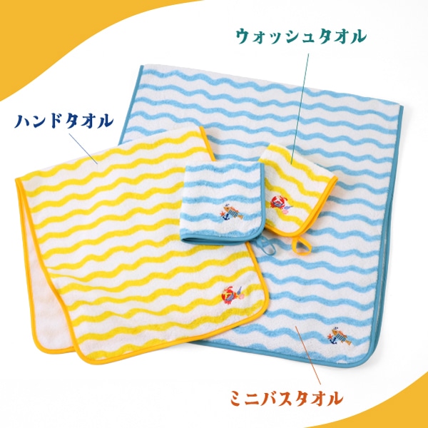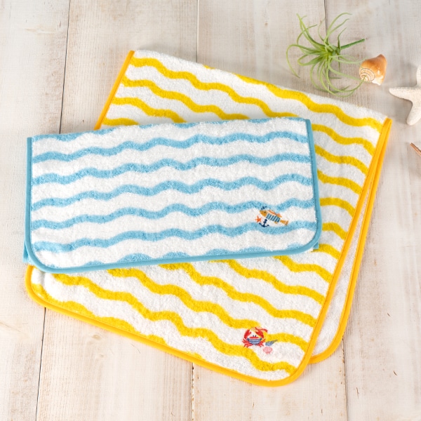 イタリアの水の都ヴェネチアをイメージした、運河のゆらめく水面のようなボーダー柄が特徴のタオルシリーズ。ワンポイントにあしらった刺繍が、遊び心をくすぐります。