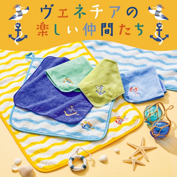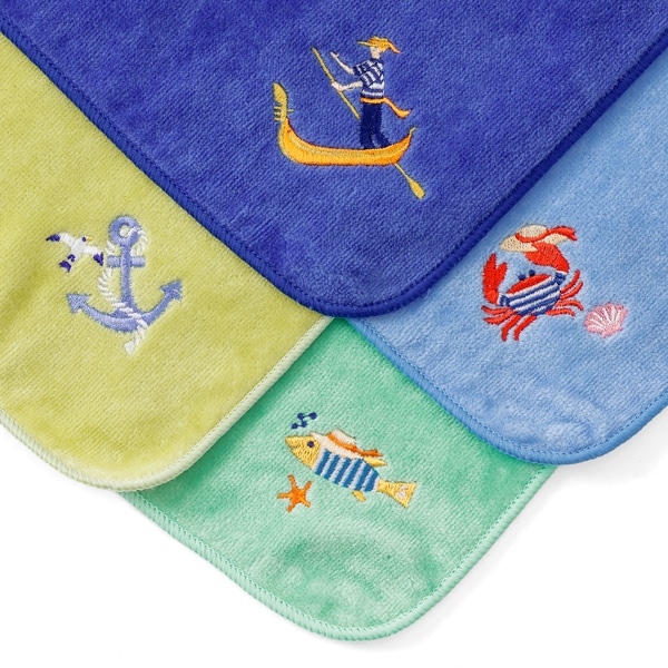 イタリアの水の都ヴェネチアをモチーフにした、遊び心あふれるワンポイント刺繍が魅力のハンカチタオルです。