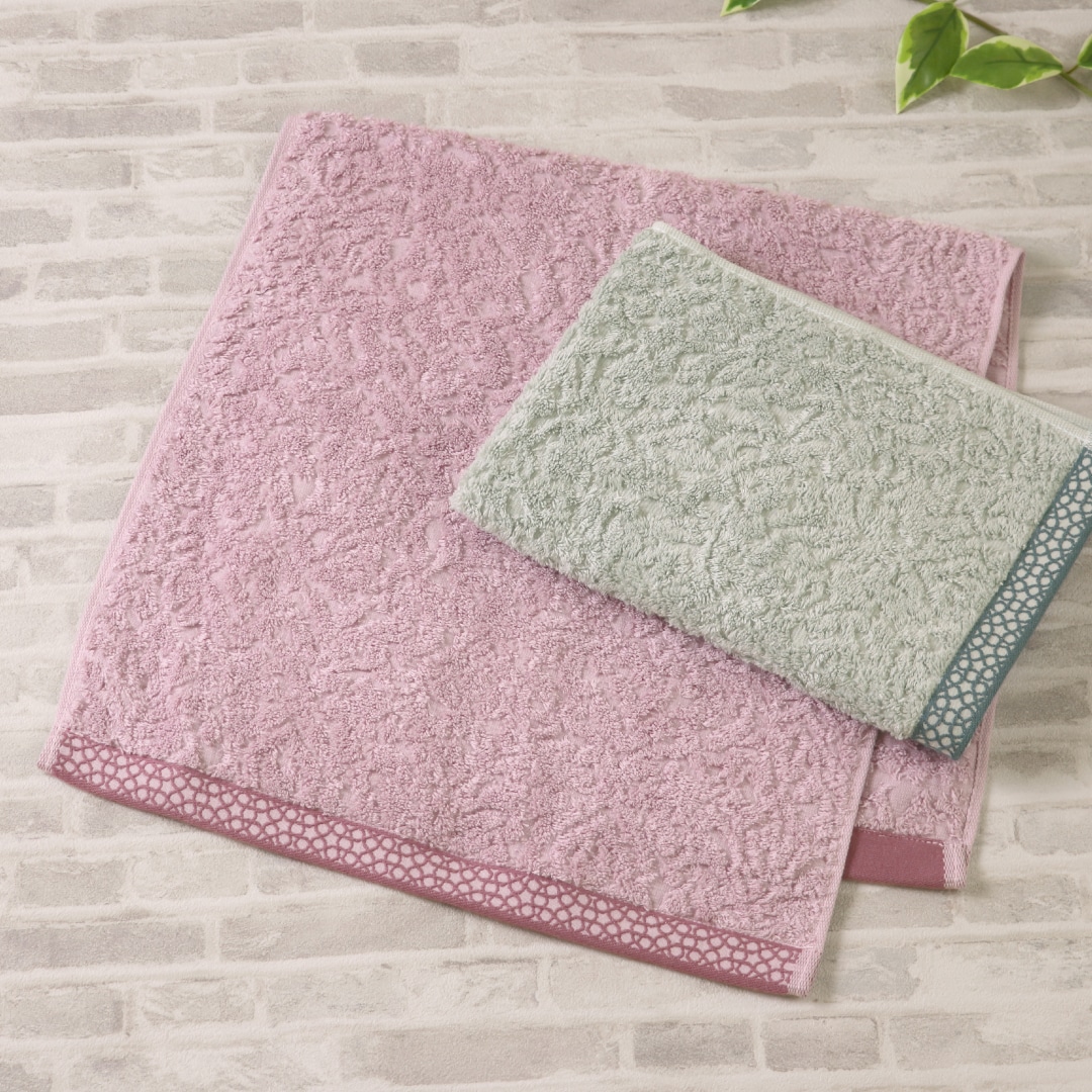 やや長めに仕上げたパイルが、柄の立体感を際立たせ、優雅で上品な雰囲気を醸し出しています。手触りの良さとデザイン性を両立させた、日々の暮らしを豊かに彩る一枚です。