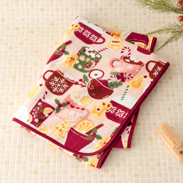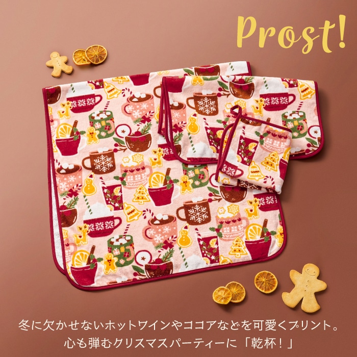 寒い冬に欠かせないホットココアやホットワインにクッキーを添えた、心がほっこり温まるような可愛らしいデザインのタオルシリーズです。