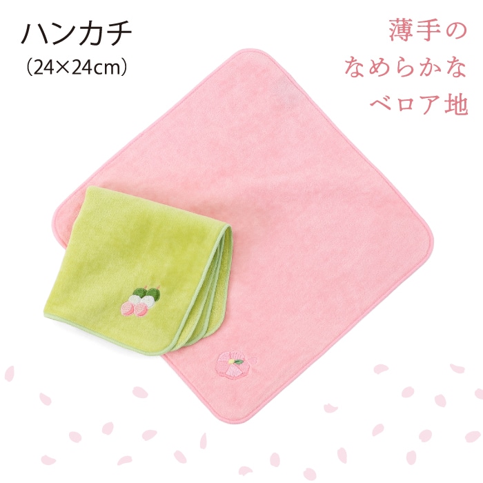 ◆こちらの商品は「ホットマンベロア ハンカチ(S)」に【限定】さくら菓子刺繍を加工した商品です。