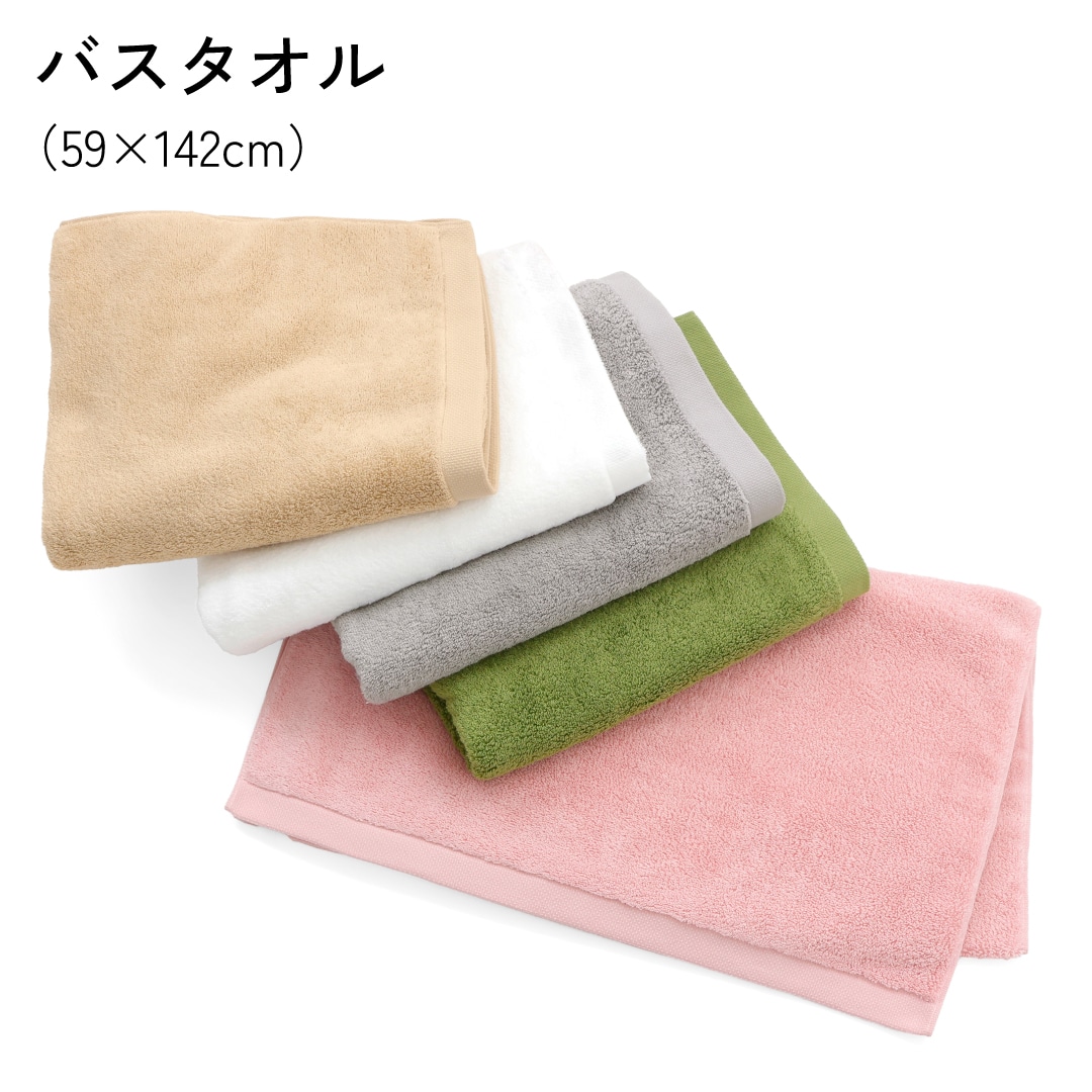 自然で落ち着いた全5色の、ふんわりふっくらと包み込まれるような質感が心地良いタオルです。