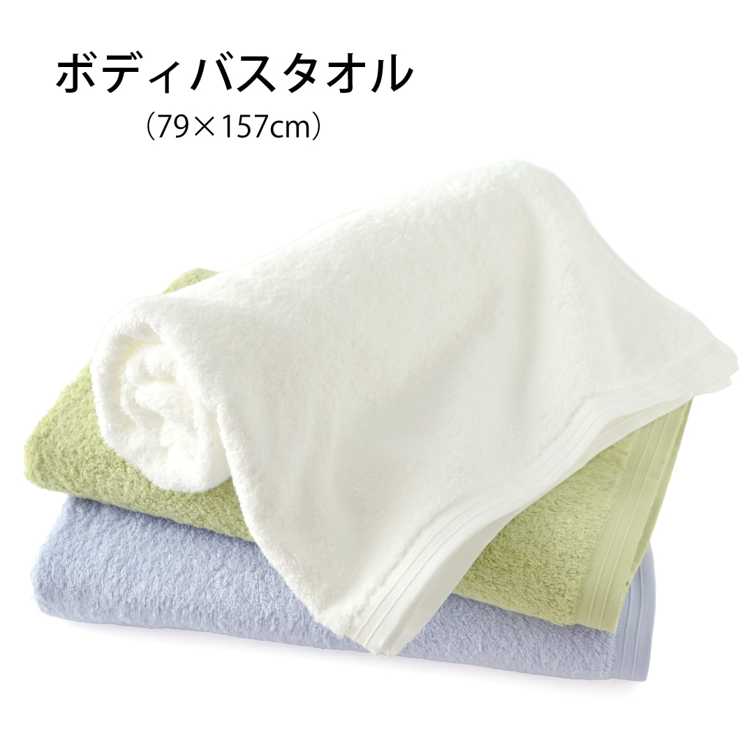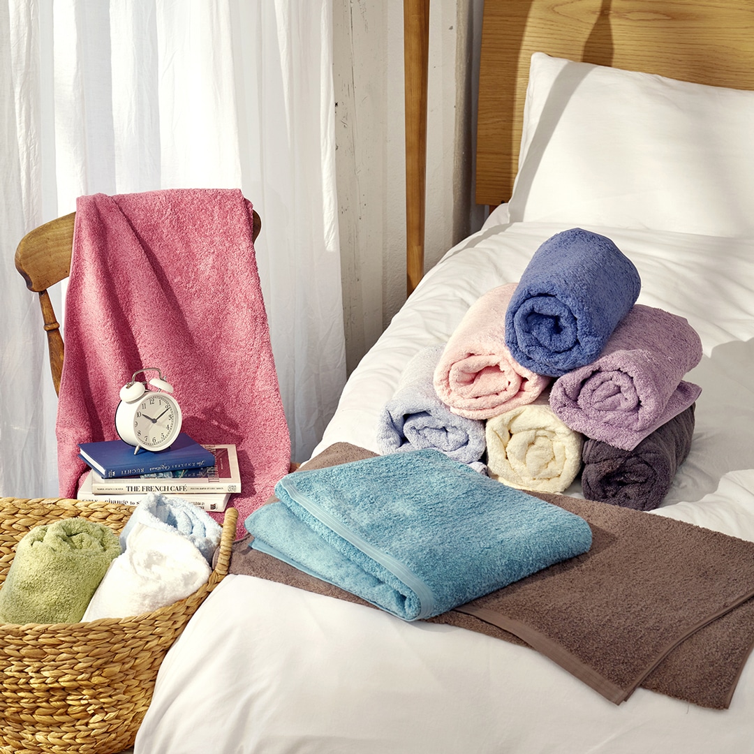 バスタオル一回り大きく、体を包み込みやすいサイズ。体を拭く以外にも、敷いたり掛けたりと多目的に活用できます。