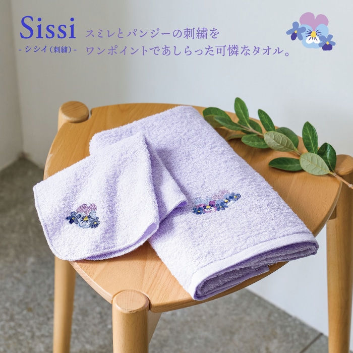上品なスミレとパンジーを、ワンポイント刺繍で表現しました。すっきりとした気品あるデザインは、日常に華やかさを添えてくれます。