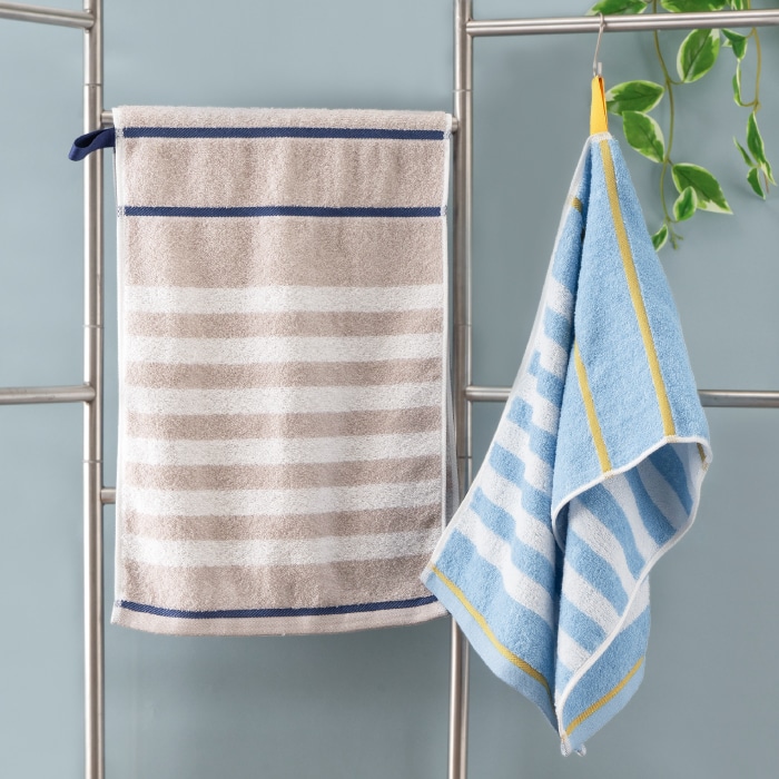澄み渡る北欧の風をイメージした、ボーダー柄シリーズ。ラインとループのアクセントカラーを効かせた、洗練された佇まいです。