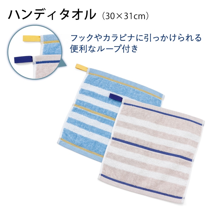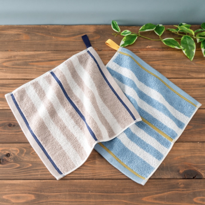 澄み渡る北欧の風をイメージした、ボーダー柄シリーズ。ラインとループのアクセントカラーを効かせた、洗練された佇まいです。