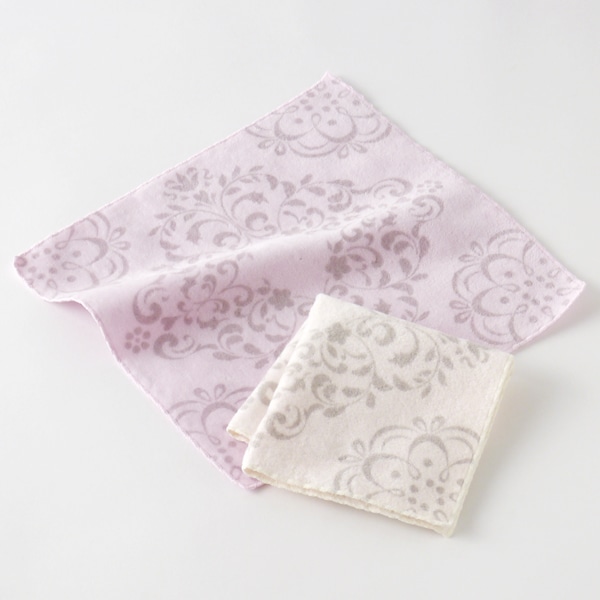 繊細な風合いと上品な色が使うたびに贅沢な気分を感じさせてくれます。レース調のプリントが華やかさを添え,フォーマルシーンにもおすすめタオルハンカチです。