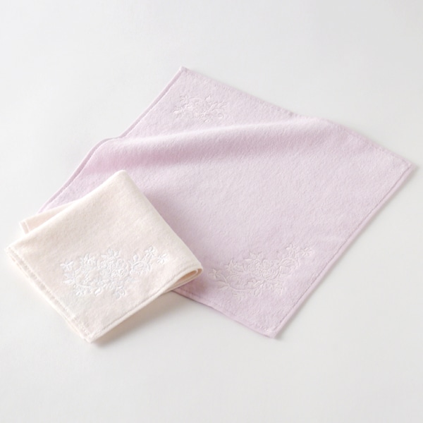繊細な風合いと上品な色が使うたびに贅沢な気分を感じさせてくれます。細やかな刺繍が華やかさを添え,フォーマルシーンにもおすすめのタオルハンカチです。