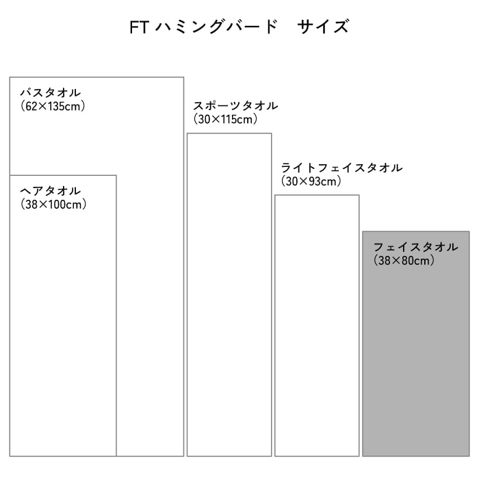 ※FTハミングバード バスタオル・ヘアタオルと同じタオル生地です。スポーツタオル・ライトフェイスタオルとは厚みが異なる生地です。
