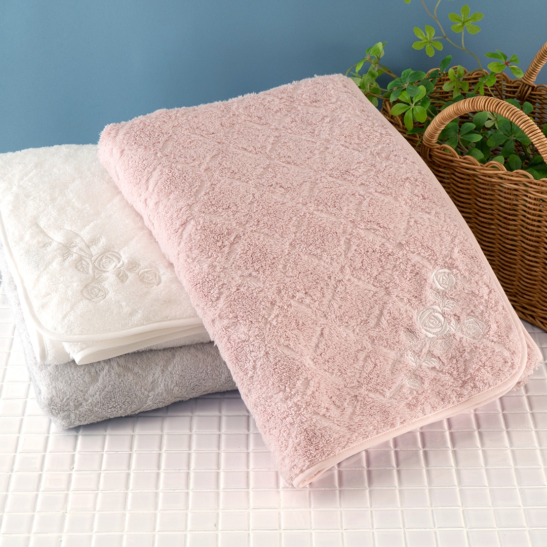 優雅なバラのモチーフをあしらった、エレガントで品の良いタオルシリーズです。さりげない刺繍が、洗練されたバスタイムを演出します。