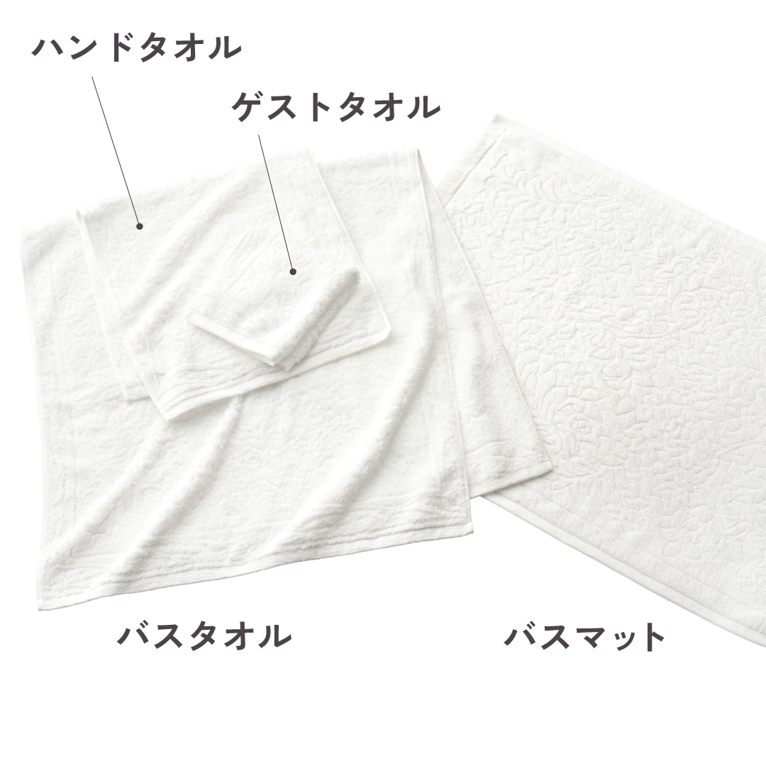 「ネオクラシックエレガント」をテーマに、スーピマ綿の太い糸でふっくらしつつもしっかりした高級感のあるバスマットです。