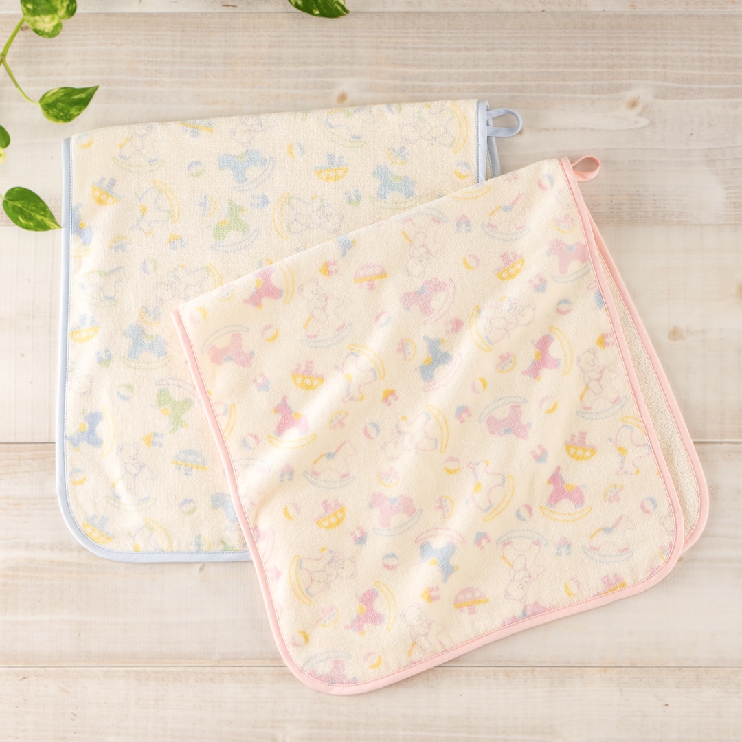 マーシャがたくさんのおもちゃに囲まれ楽しく遊んでいる様子をイメージしたプリント柄のタオルです。