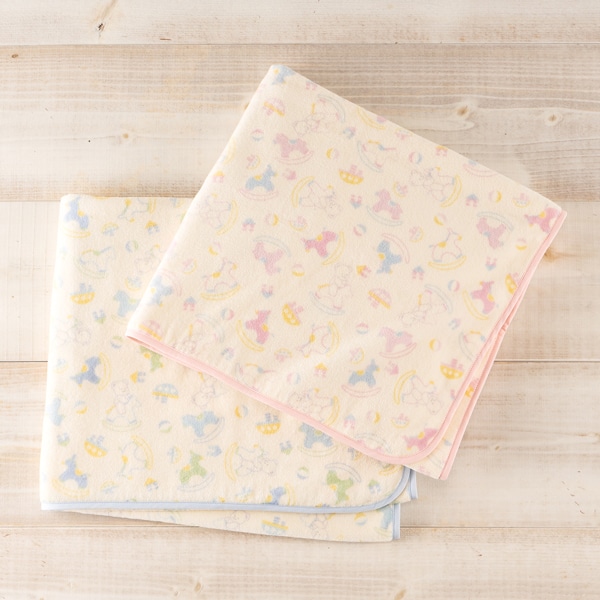 マーシャがたくさんのおもちゃに囲まれ楽しく遊んでいる様子をイメージしたプリント柄のタオル。