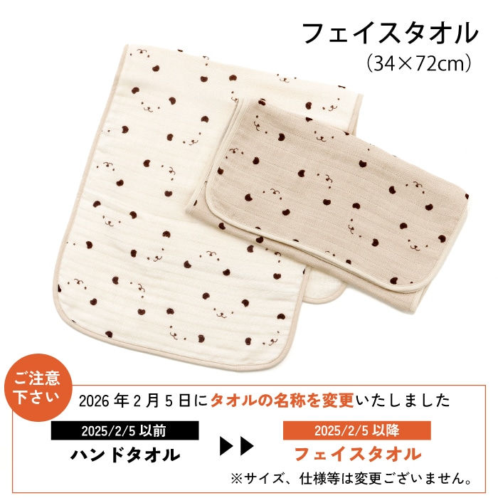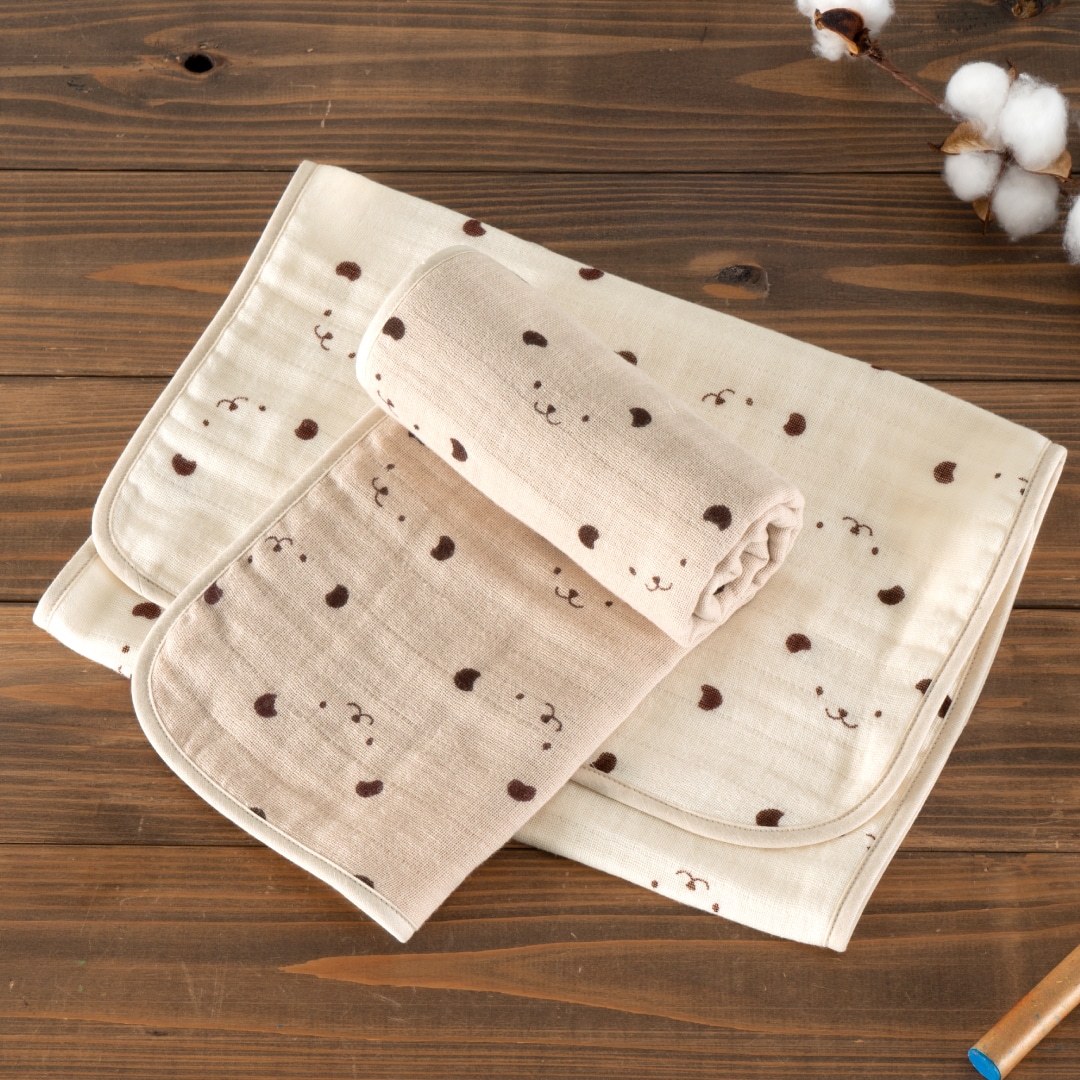 手や顔を拭くのに使いやすいサイズで、お腹に掛けてあげたり、背中に敷いてあげたりと多目的にもお使いいただけます。