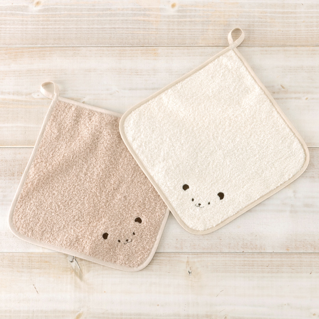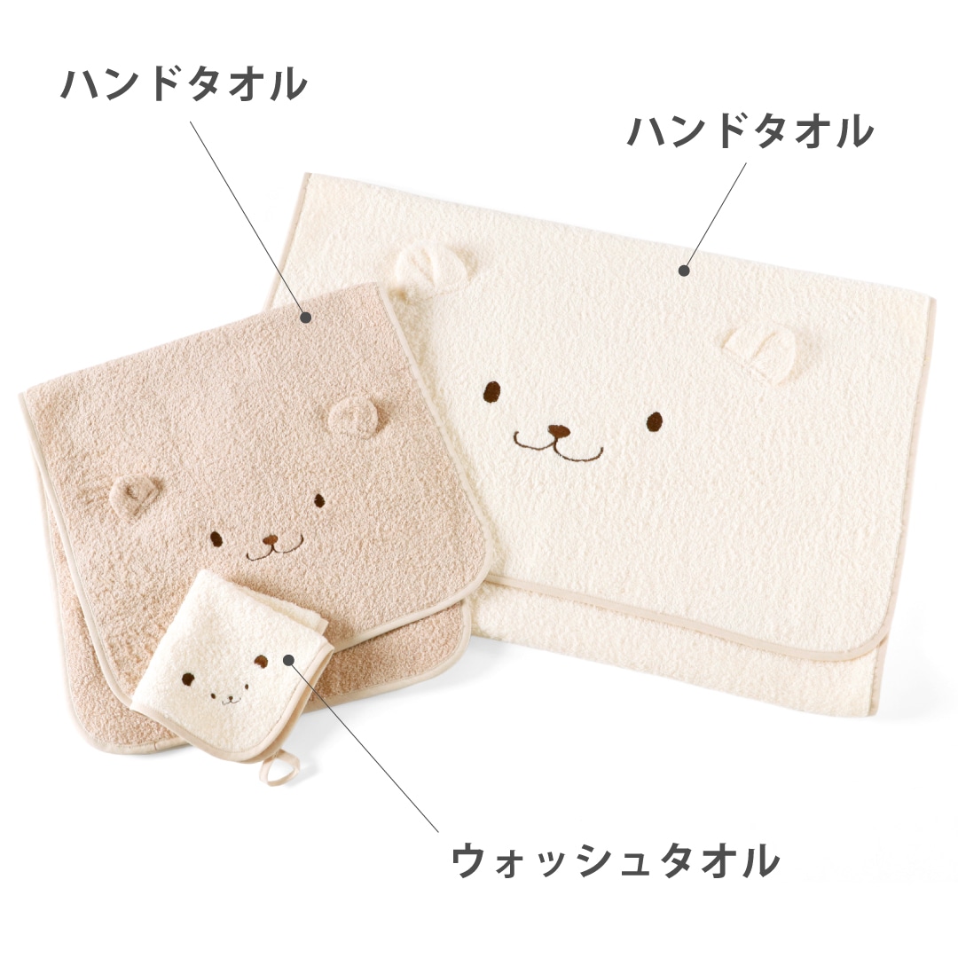ふわふわなタオルの中にくまさんがかくれんぼ!赤ちゃんの肌にやさしいやわらかなハンドタオルです。