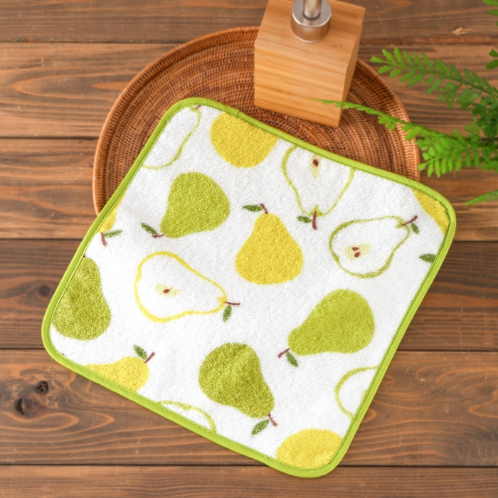 ユニークな形がかわいい洋ナシをデザインしたナチュラルな雰囲気のタオルシリーズ。