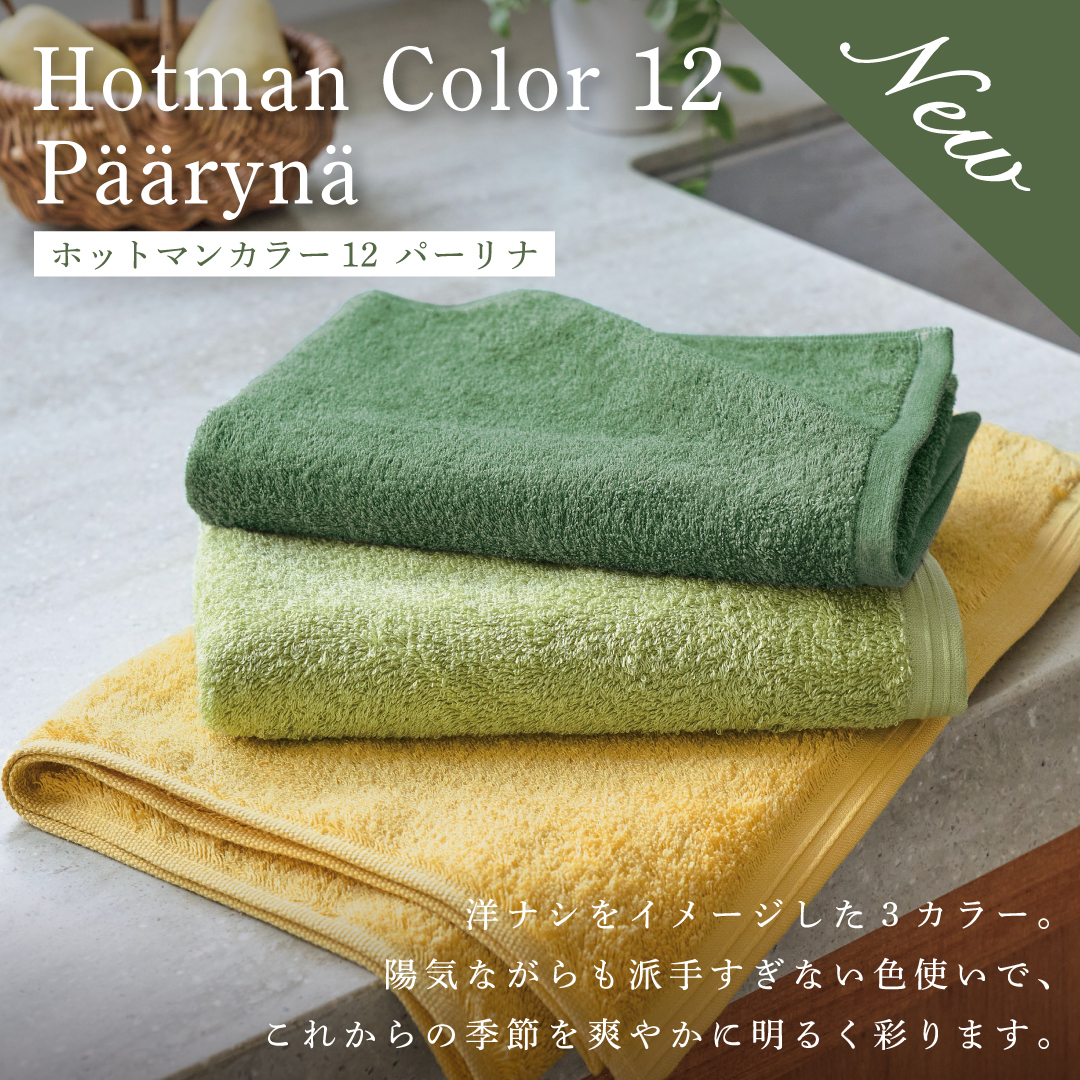 様々な洋ナシの色をイメージしたタオル。自然で穏やかなカラーです。