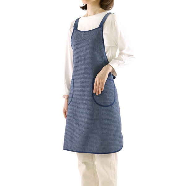しなやかなワッフル生地の軽いつけ心地のエプロン。