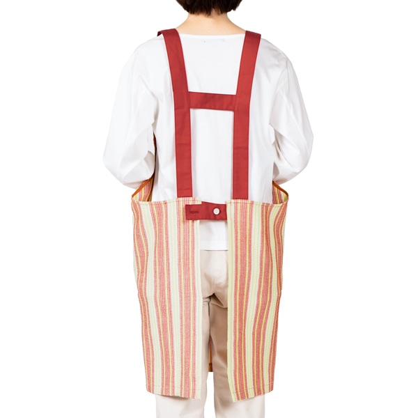 幅広の肩紐が背面でH型につながっているため肩から落ちにくく疲れにくいワークエプロンです。ゆとりのあるサイズ感で、より動き易くなるようにデザインを工夫しました。