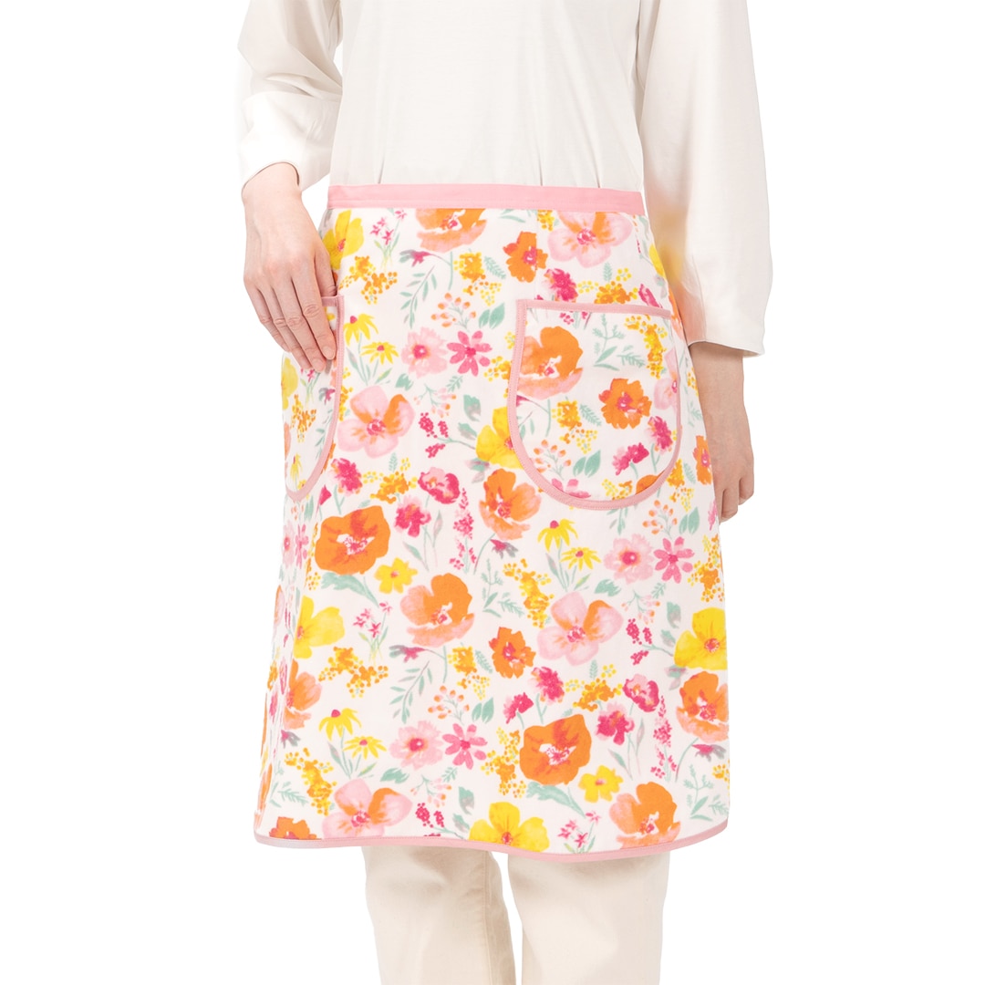 ポピーやミモザをモチーフにした春のプリント柄を、なめらかな肌触りの「シャーリング地」で仕立てたエプロンシリーズです。 シャーリング地はビロードのような優しい光沢があり、花々の色鮮やかな表情をより一層美しく引き立てます。 タオル地ならではの吸水性の良さはそのままに、身につけた時の軽やかさも魅力。 タオルシリーズとお揃いで使えば、家事の時間も春の野原にいるような、明るい気分で過ごせそうです。