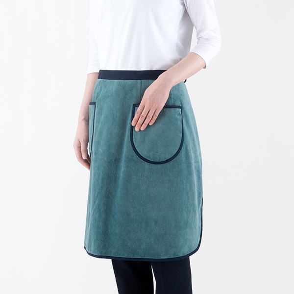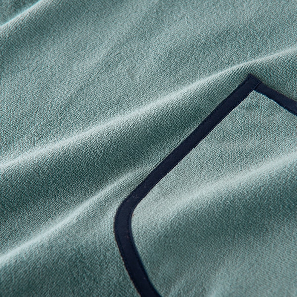 上品な定番デザインに、遊び心のあるパイピングを効かせた一着です。思わず触れたくなるような、なめらかなベロア地は吸水性も抜群です。