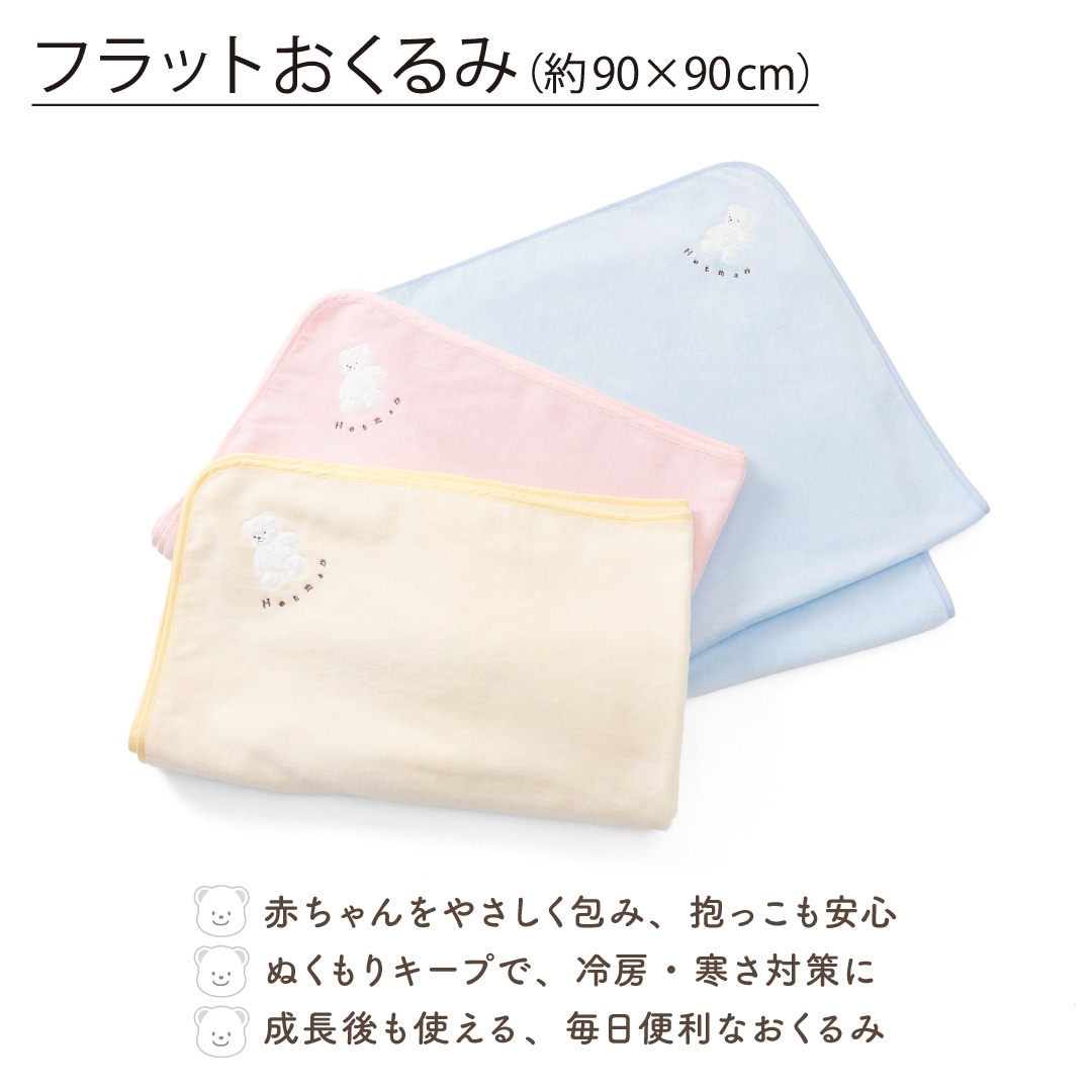 なめらかな肌触りが特徴のシャーリング地のフラットおくるみです。
