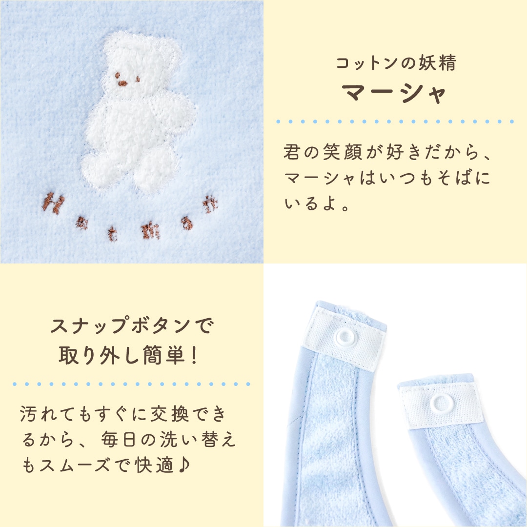 新生児期は授乳のときに、歯が生え始めたらよだれかけや離乳食時のエプロンにと赤ちゃんには何枚あっても嬉しいアイテムです。