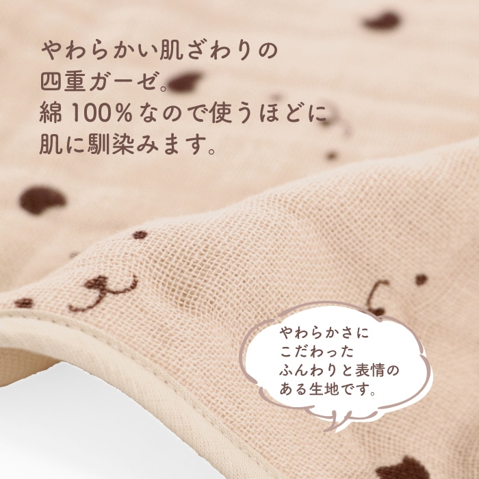 四重ガーゼのやわらかだけどしっかりした風合いの生地は、季節を問わずお使いいただけます。