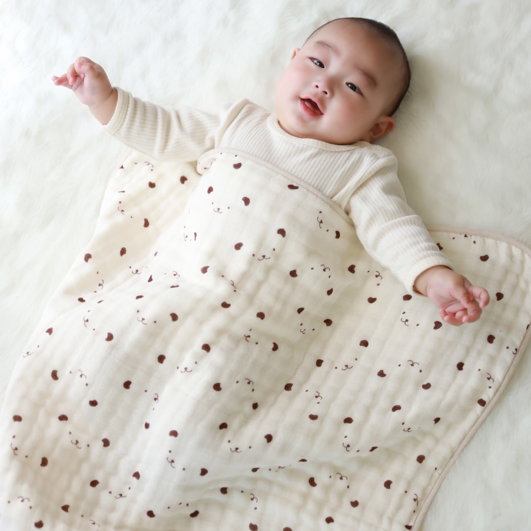 ふわふわなタオルの中にくまさんがかくれんぼ!の「かくれんぼ」シリーズに、やわらかなガーゼ素材のアイテムが新登場しました。