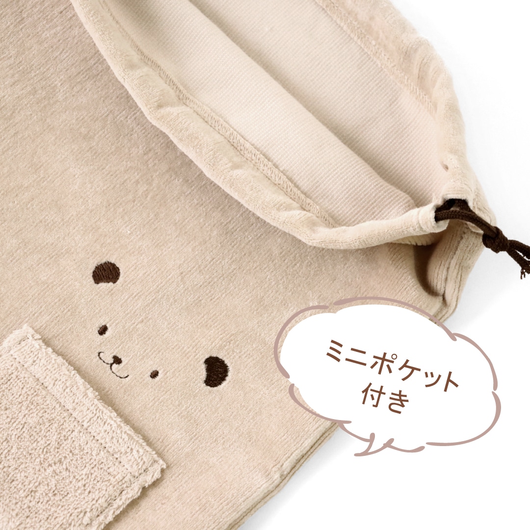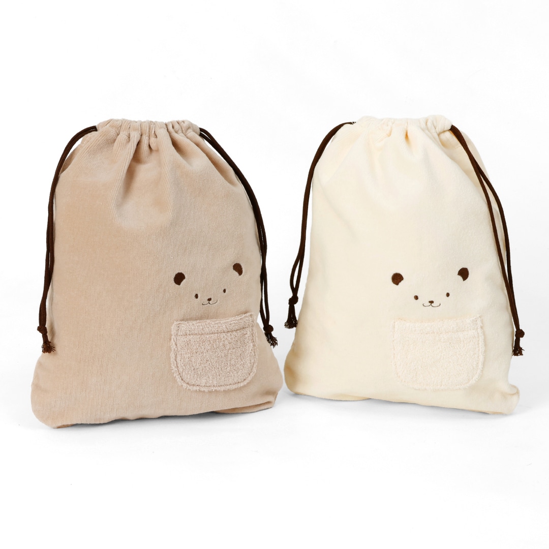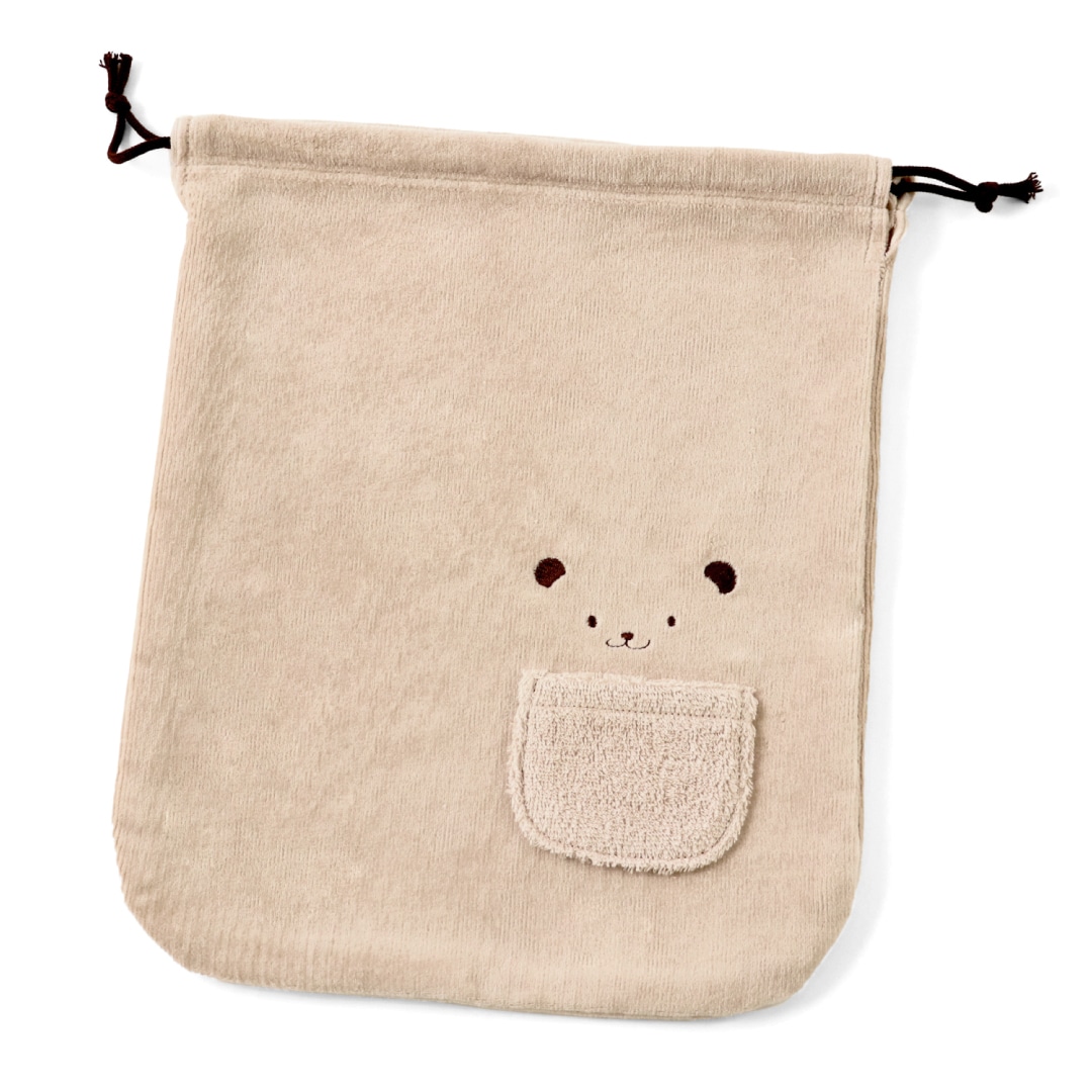 おむつやお着換えを持ち歩くのに便利な巾着です。ナチュラルカラーは成長してからも使えるシンプルなデザインです。