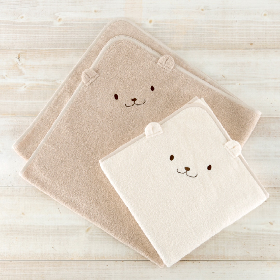 ふわふわなタオルの中にくまさんがかくれんぼ!赤ちゃんの肌にやさしいやわらかなタオルです。
