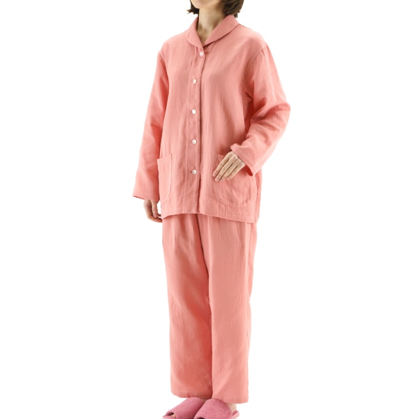 粗い密度の平織りの布地を二層に織りあげたガーゼ生地の定番パジャマです。
