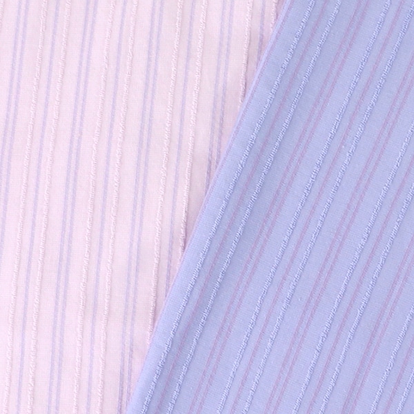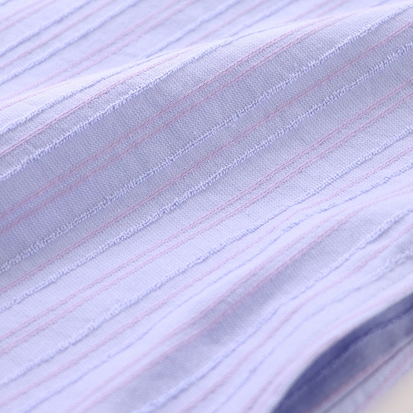 サラッとした布帛地にストライプ状に織ったパイル部分がこだわりのオリジナル生地を使っています。