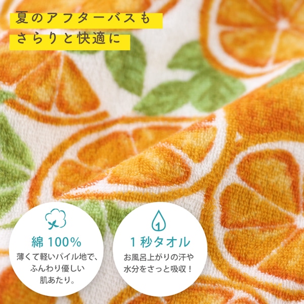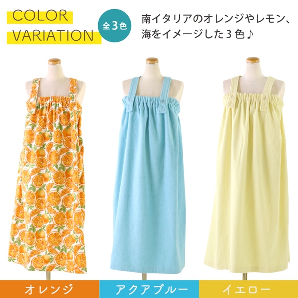 みずみずしいオレンジを前面にちりばめたプリント柄と、爽やかなレモンと海をイメージした元気が出るカラーでご用意いたしました。