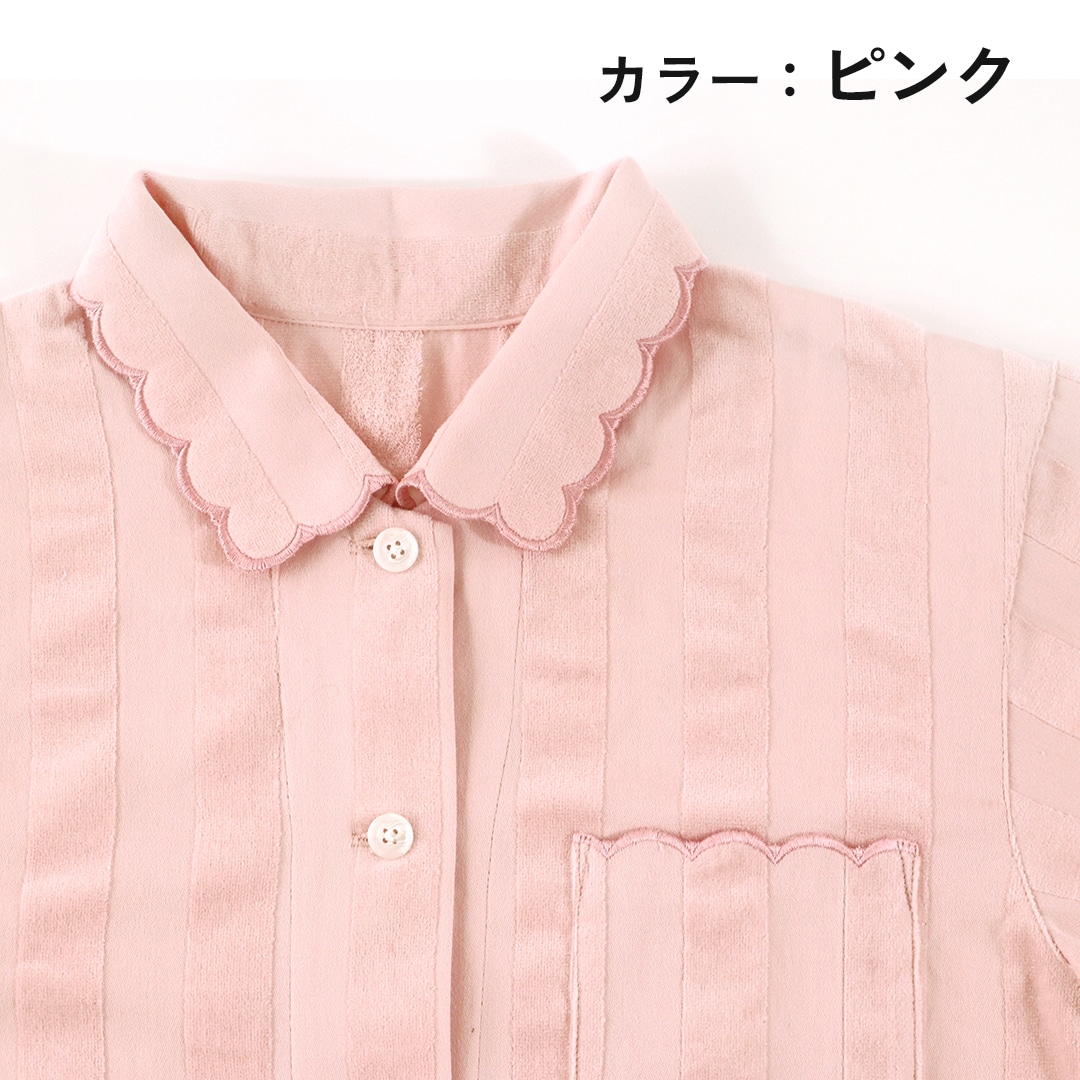 なめらかなシャーリングのタオル地とサテン地を縞状に織った風格あるホットマンならではのオリジナル生地を使った優雅なパジャマ。肌が当たる内側は繊細な糸で織り上げたパイル地です。空気の層ができるので保温性があり、なおかつ寝汗もしっかり吸水してくれる秋冬シーズンにおすすめの逸品。