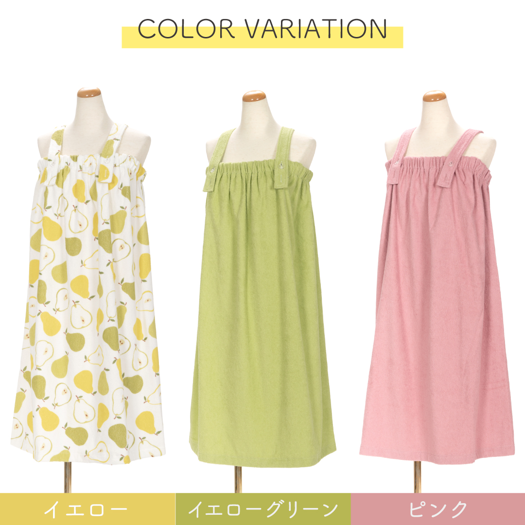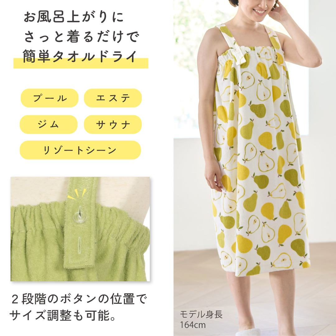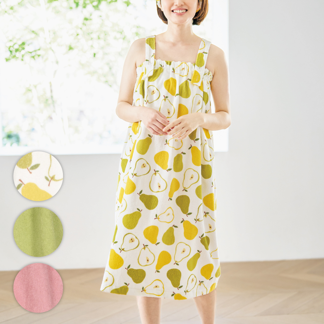 シャワーの回数が増える季節に重宝なパイル地のシャワードレスは、サッとお召しいただくだけでアフターバスを快適に過ごせます。