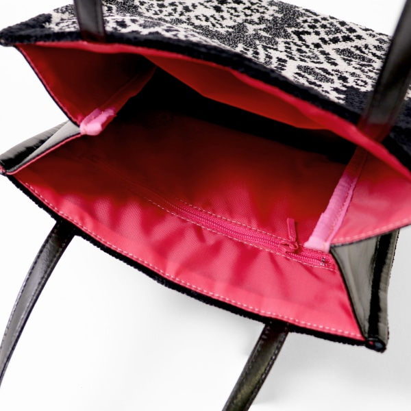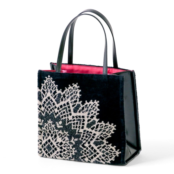 ひざの上に納まるサイズのミニトートバッグ。シンプルなレース柄のデザインに内側の華やかなピンクが可愛らしいバッグはお誕生日プレゼントや母の日の贈り物におすすめです。