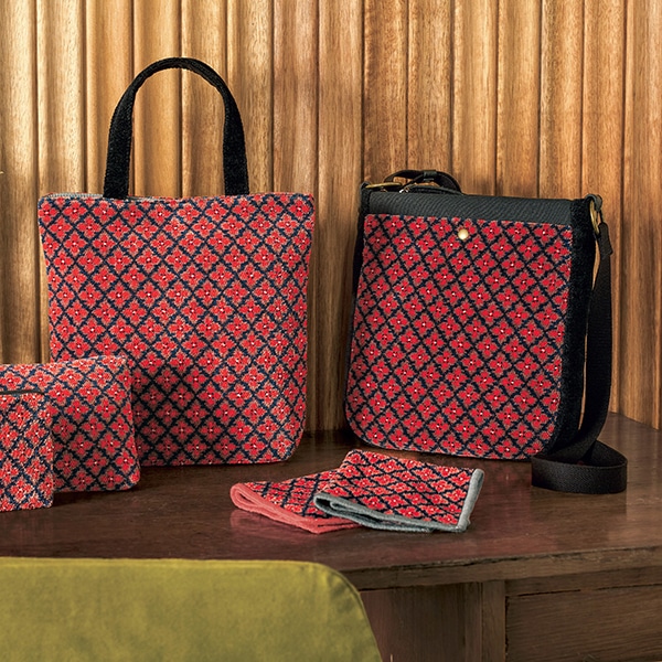 美しい赤が冬を彩る小紋柄。モダンで目を惹くビビットなデザインです。
