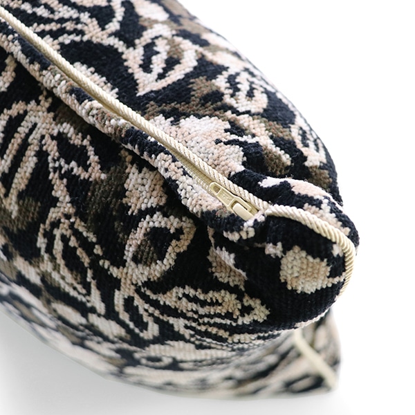 両面総柄のスクエア型シェニールクッション。クッションカバーは取り外しができ、ご家庭でお洗濯が可能です。